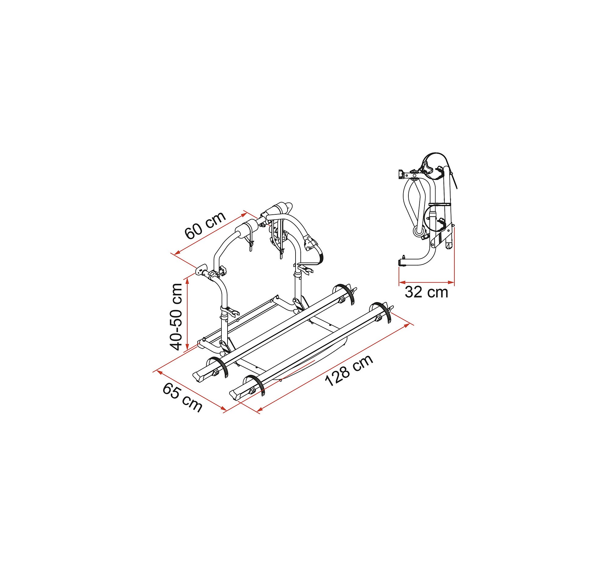 标配可放置2辆自行车,可扩展至3辆自行车。