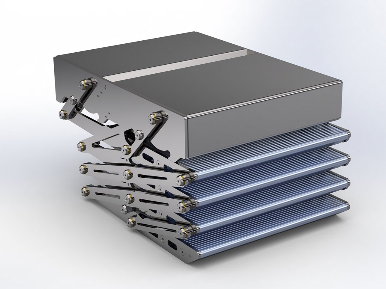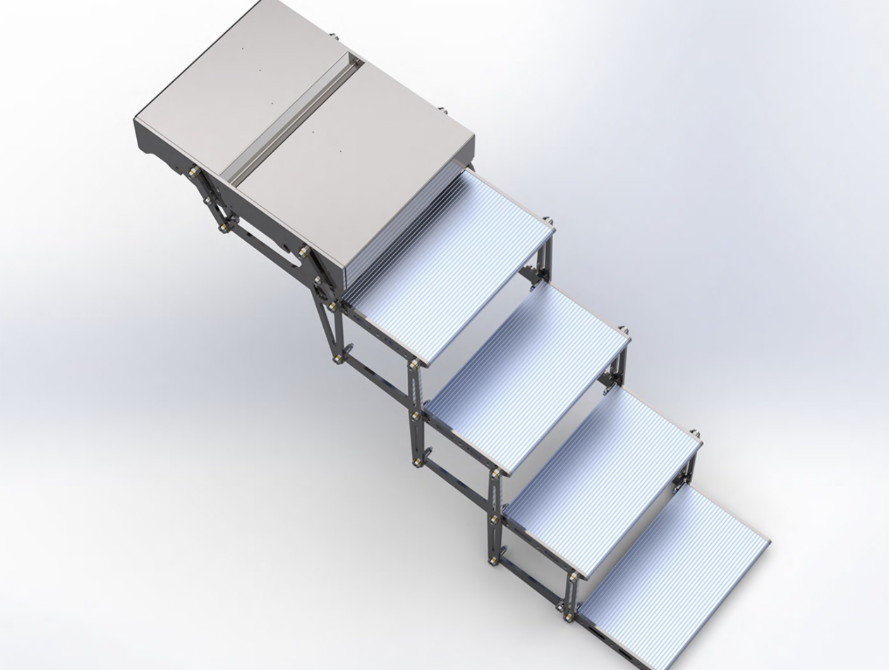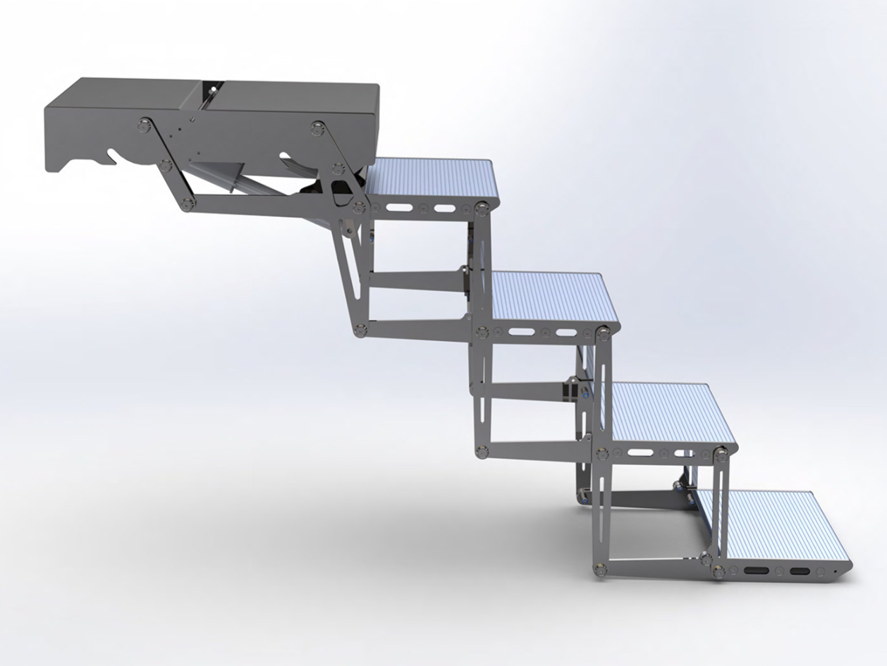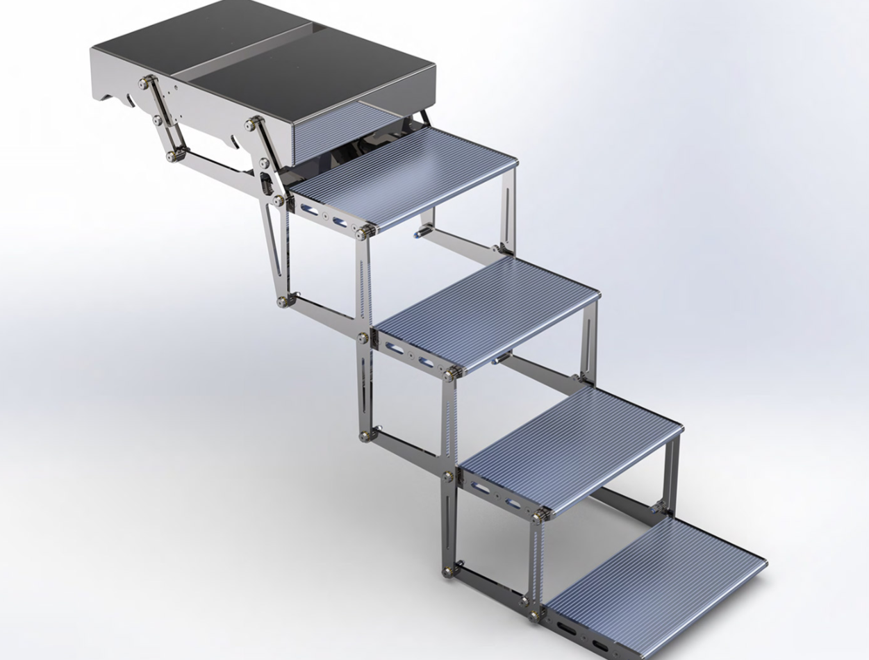 电动折叠式阶梯,配备遥控器实现折叠与展开功能。